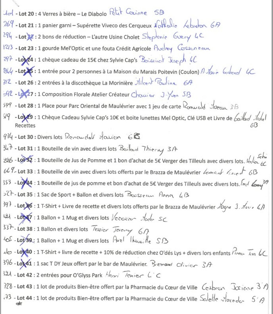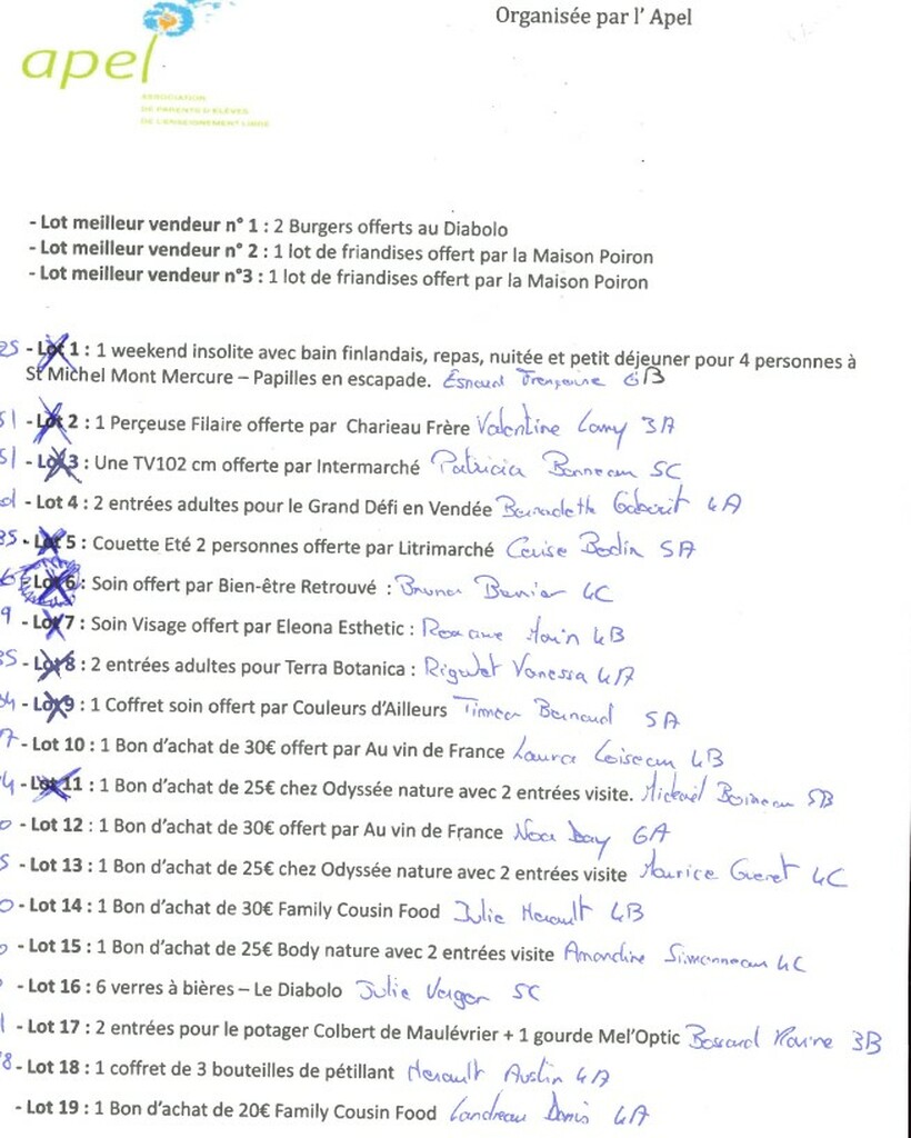 LOTS APEL TOMBOLA FETE DU COLLEGE