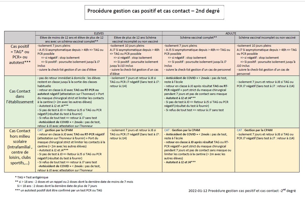 PROTOCOLE SANITAIRE 21 JANVIER 2022