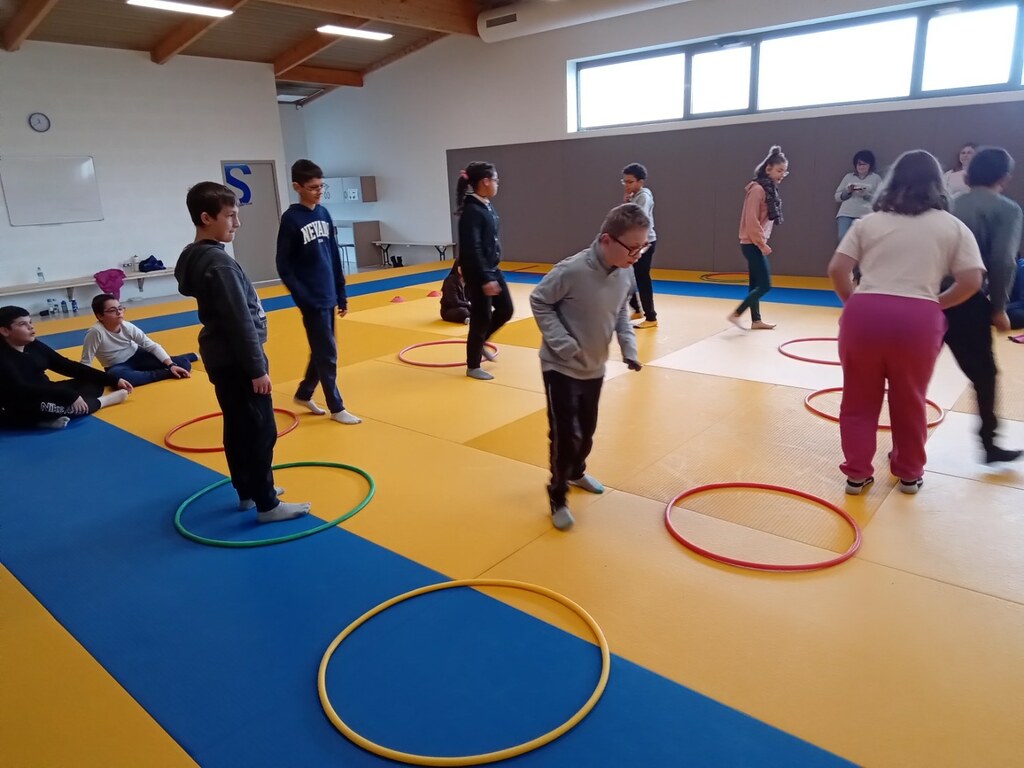 A la fin de la séance, les élèves ont joué aux cerceaux musicaux.