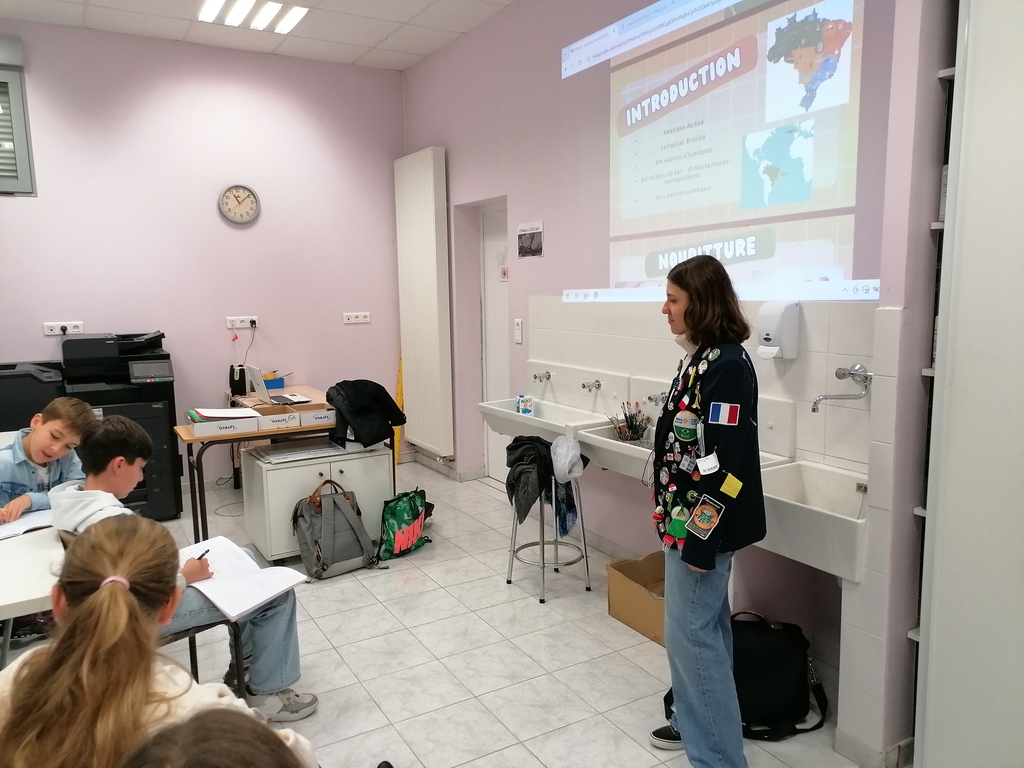 La journée a commencé par une "Assembly" avec un discours prononcé par des élèves de l'Option Internationale. Puis, au cours de la journée, en cours de langues, les 2 étudiantes sont venues parler de leur pays dans toutes les classes, à travers les questions préparées par les élèves, en anglais ou en espagnol.