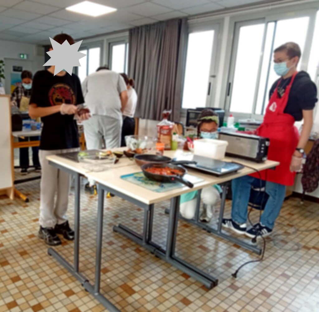 Le mardi 15 octobre, nous sommes allés rejoindre les élèves du dispositif de l'école de Saint-Exupéry. On a cuisiné une soupe aux légumes avec des poireaux, des pommes de terre, des carottes, des navets. Nous avons épluché puis découpé les légumes, pendant que les légumes cuisaient, nous sommes allés jouer au parc. En revenant, nous avons mixé le tout. Ensuite on a mangé.