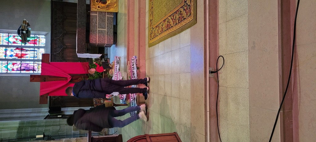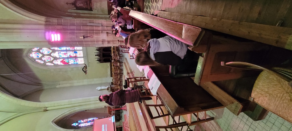 Ce vendredi 8 avril, 28 élèves ont été accueillis à l’Eglise Sainte-Mélaine par Père Jérôme et Bénédicte Morin afin de préparer la Semaine Sainte dont la thématique était Guerre et Paix - Aimer ses ennemis".